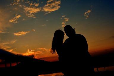 Keywords: couple love shadow sunset bridge water