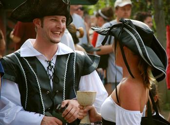 Keywords: couple pirates male female romance joyful expression happy hats