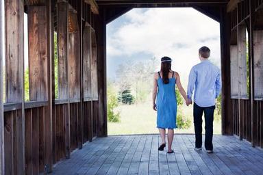 Keywords: couple walking hand-in-hand covered bridge boyfriend girlfriend