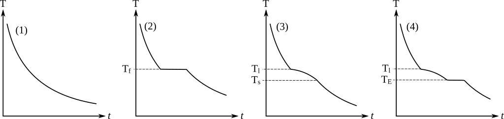 Keywords: Courbe analyse thermique generique.svg en Thermal analysis curves for typical binary alloys solid body no phase transition ; pure component or eutectic fusion temperature T<sub>f</sub>; alloy with total miscibility liquidus and solidus temperatures T<sub>l</sub> and T<sub>s</sub>; alloy with partial miscibility solid solution + eutectic liquidus and eutectic fusion temperatures T<sub>l</sub> and T<sub>E</sub> fr Courbes d'analyse thermale d'alliages binaires typiques corps solide pas de transformation de phase ; corps pur ou eutectique température de fusion T<sub>f</sub>; alliage à miscibilité totale températures de liquidus et de solidus T<sub>l</sub> et T<sub>s</sub> ; alliage à miscibilité partielle solution solide + eutectique températures de liquidus et de fusion eutectique T<sub>l</sub> and T<sub>E</sub> own Cdang 2009-04-13 Created with Inkscape Thermal analysis curves |