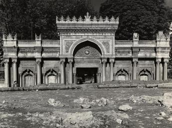 | Keywords: pertevniyal camii pertevniyalcamii pertevniyal mosque pertevniyalmosque aksaray valide camii aksarayvalidecamii aksaray valide mosque aksarayvalidemosque sarkis balyan sarkisbalyan osep eski i̇stanbul eskiistanbul old i̇stanbul oldistanbul mimari architecture aksaray i̇stanbul istanbul salt araştırma saltaraştırma salt research saltresearch salt online saltonline outdoor monochrome www.archives.saltresearch.org/R/-?func=dbin-jump-full&amp... Pertevniyal Valide Sultan Camii'nin Aksaray Meydanı’na bakan avlu kapısı “Fatih İlçesi’nde, Aksaray Meydanı’nda ve meydanın kuzeybatı kesimindedir. [...] Abdülaziz’in (hd 1861-1876) annesi Pertevniyal Valide Sultan tarafından yaptırılmıştır. Pertevniyal Valide Sultan’ın çok önem vererek yaptırdığı cami, aslında mektep, türbe, muvakkithane ve sebilden oluşan bir külliye olarak tasarlandı. [...] Yapının mimarı Sarkis Balyan’dır, tasarıma Agop Balyan’ın da katıldığı, çizim işlerinde desinatör Osep’in çalıştığı bilinmektedir. [...] Valide Camii, İstanbul’un kentsel düzenleme çalışmalarında en çok zarara uğrayan tarihi miraslarından biridir. 1956-1959 yılları arasında Aksaray Meydanı düzenlemesi ve Vatan ve Millet caddelerinin açılması çalışmaları sırasında Pertevniyal Sultan’ın türbesi ile muvakkithane ve sebil kaldırıldı. [...] Yol açımı sırasında Millet Caddesi’nin kotu yükseltildiğinden, avlunun güney kapısı yoldan aşağı düzeyde kaldı. Doğudan batıya uzanan bir rampa ile kapıya ulaşım sağlandı. 1969’da başlayan altgeçit ve üst yol çalışmaları sonunda cami de iyice gömülü bir pozisyona itildi.” Afife Batur Kaynak: “Dünden Bugüne İstanbul Ansiklopedisi”, Kültür Bakanlığı ve Tarih Vakfı ortak yayını, cilt 7, s. 360-362, 1994. SALT Araştırma, Ali Saim Ülgen Arşivi www.archives.saltresearch.org/R/-?func=dbin-jump-full&amp... Pertevniyal Valide Sultan Camii'nin Aksaray Meydanı’na bakan avlu kapısı “Fatih İlçesi’nde, Aksaray Meydanı’nda ve meydanın kuzeybatı kesimindedir. [...] Abdülaziz’in (hd 1861-1876) annesi Pertevniyal Valide Sultan tarafından yaptırılmıştır. Pertevniyal Valide Sultan’ın çok önem vererek yaptırdığı cami, aslında mektep, türbe, muvakkithane ve sebilden oluşan bir külliye olarak tasarlandı. [...] Yapının mimarı Sarkis Balyan’dır, tasarıma Agop Balyan’ın da katıldığı, çizim işlerinde desinatör Osep’in çalıştığı bilinmektedir. [...] Valide Camii, İstanbul’un kentsel düzenleme çalışmalarında en çok zarara uğrayan tarihi miraslarından biridir. 1956-1959 yılları arasında Aksaray Meydanı düzenlemesi ve Vatan ve Millet caddelerinin açılması çalışmaları sırasında Pertevniyal Sultan’ın türbesi ile muvakkithane ve sebil kaldırıldı. [...] Yol açımı sırasında Millet Caddesi’nin kotu yükseltildiğinden, avlunun güney kapısı yoldan aşağı düzeyde kaldı. Doğudan batıya uzanan bir rampa ile kapıya ulaşım sağlandı. 1969’da başlayan altgeçit ve üst yol çalışmaları sonunda cami de iyice gömülü bir pozisyona itildi.” Afife Batur Kaynak: “Dünden Bugüne İstanbul Ansiklopedisi”, Kültür Bakanlığı ve Tarih Vakfı ortak yayını, cilt 7, s. 360-362, 1994. SALT Araştırma, Ali Saim Ülgen Arşivi |