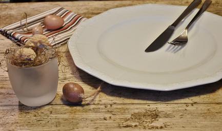 Keywords: cover plate empty knife fork tableware cutlery porcelain decor service table board nice prepared serving suggestion