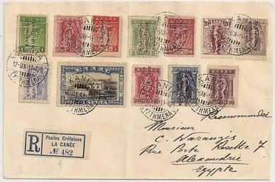 | Keywords: CoverCrete1914.jpg ru Почтовый конве т отп авленный из Ханьи К ит в 1914 году ф анки ованный ма ками Г еции для оккупи ованных айонов Ту ции A philatelic cover posted fom Chanea Crete to Egypt on January 17 1914 The cover is stamped with a Souda issue 25 lepta stamp and with the small denominations stamps of ΕΛΛΗ ΙΚΗ ΔΙΟΙΚΗΣΙΣ Hellenic Administration overprints 260836955529 Postal administration of Greece 1914 PD-old Stamps of Crete Postal covers of Greece Overprints Stamps on covers and postcards Post of Crete Registered letters |