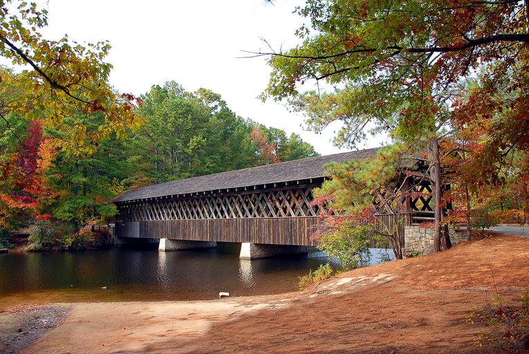 Keywords: covered bridge stone mountain georgia structure landmark historic fall season autumn colors bridge nature forest water landscape tree natural covered travel rural scenic architecture outdoor wooden