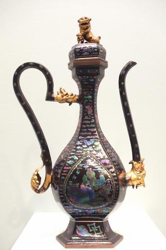 Keywords: Covered ewer with figures in a landscape, China, Qing dynasty, metal core with black lacquer and mother-of-pearl inlays - Asian Art Museum of San Francisco - DSC01628.JPG en Exhibit in the Asian Art Museum of San Francisco San Francisco California USA This artwork is in the public domain because the artist died more than 70 years ago Photography was permitted in the museum without restriction 2013-11-05 20 53 00 own Daderot other versions cc-zero Uploaded with UploadWizard Metalwork of China in the Asian Art Museum of San Francisco Lacquer from the Qing Dynasty Mother of pearl inlay |