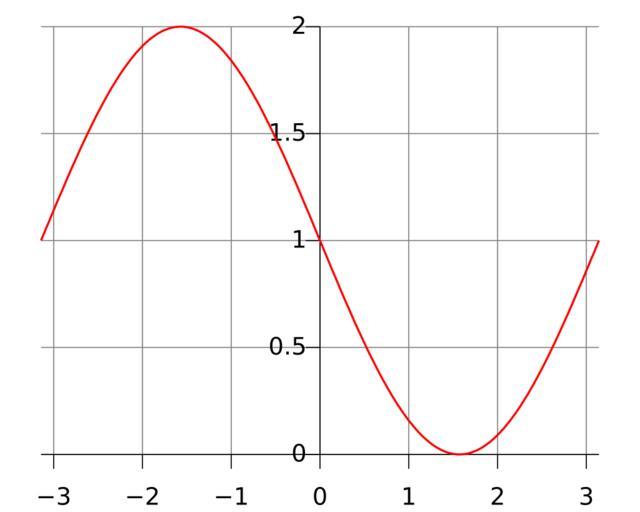 | Keywords: Coversine.svg en Graph of the coversine function 1-sin x from -pi to +pi Own Qef 2008-07-02 Old bitmap version with the same axes en File Coversine gif Created with Gnuplot set terminal svg font Bitstream Vera Sans 18 set output Coversine svg set xrange -pi pi set yrange 0 2 set xzeroaxis linetype -1 set yzeroaxis linetype -1 set xtics axis nomirror set ytics axis nomirror set key off set grid set border 0 set samples 400 plot 1-sin x with line linetype rgbcolor red linewidth 2 Post-processed with the following command to change the hyphens to proper minus signs <pre>sed -i 's/<text>-/<text>\xE2\x88\x92/g' Coversine svg</pre> Coversine function |