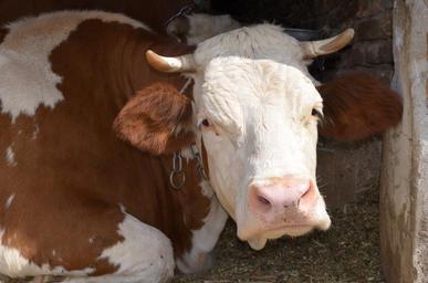 Keywords: cow animal brown cattle white milk head meadow countryside