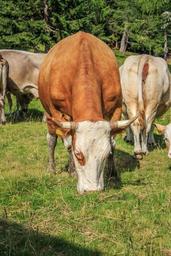 Keywords: cow beef alm cattle animal cows dairy cows horns agriculture nature alpine meadow alpine graze austria landscape mountains cow herd weidetier
