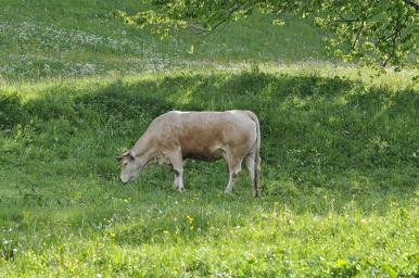 Keywords: cow beef animal livestock meadow grass pasture out eat