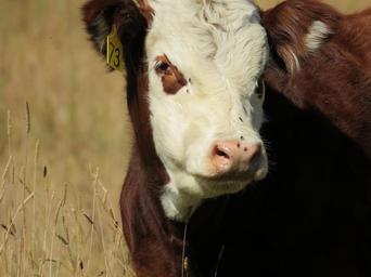 Keywords: cow calf cattle animal baby brown field meadow flies