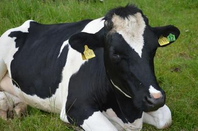 Keywords: cow farmer black white pasture grass browser farm farm animal animal ear flap