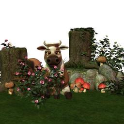 Keywords: cow toon fig funny cheeky eyes ears tube fairytale fantasy beautiful forest mushrooms