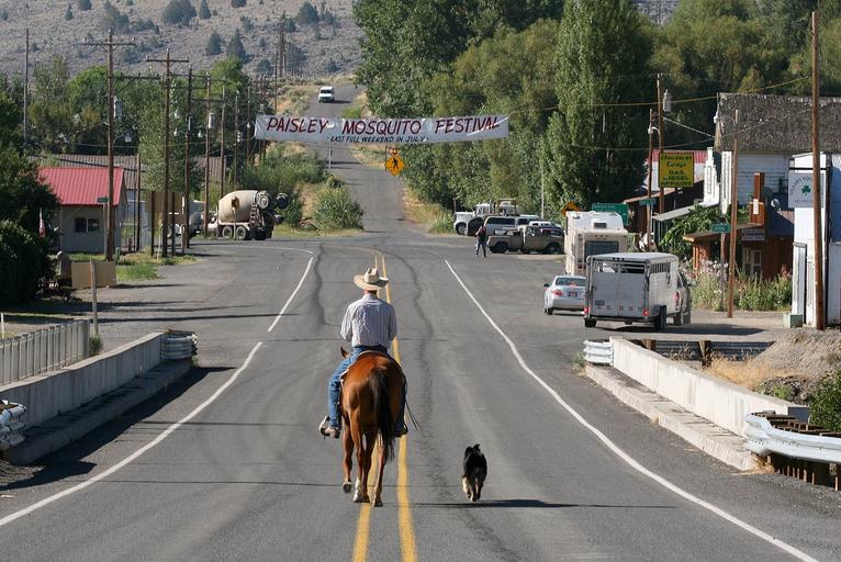Keywords: cowboy horserider dog horse street highway ride western canine town horseman steed outdoors equine oregon usa