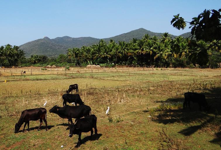 Keywords: cows cattle bovine species black livestock farming rural milk dairy countryside domestic farmland herd western ghats egrets pasture india