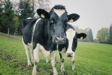 Keywords: cows two cows dairy agriculture mammal livestock staring cows staring agricultural pasture farm animal cattle farming herd