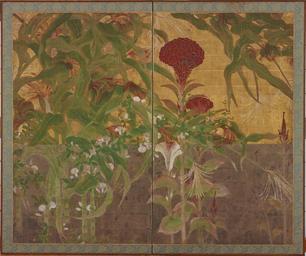 | Keywords: Coxcombs, maize and morning glories - Google Art Project.jpg 6872288 Unknown /collection/freer-gallery-of-art-smithsonian/artwork/coxcombs-maize-and-morning-glories-unknown/6599901/ F1901 99 author /collection/freer-gallery-of-art-smithsonian/ Freer Gallery of Art Smithsonian 322006 http //www asia si edu/ 3/9/2012 7 29 14 PM /collection/freer-gallery-of-art-smithsonian/artwork/coxcombs-maize-and-morning-glories-unknown/6599901/ 1600 17th century Momoyama period Ink color gold and silver on paper True 1593 6599901 True 1699 3/25/2012 5 22 50 AM F1901 99 Gift of Charles Lang Freer Painting 1600 1700 Japan Origin w1900 x h1593 cm 17th century False 1 19347319347319 © Digital Image Smithsonian Institution Object coxcombs-maize-and-morning-glories-unknown Coxcombs maize and morning glories c 1900 Ink color gold and silver on paper Momoyama period special url_id EgFVgXiOdxh9cw PD-old-100 Google Art Project works by unknown artist Plants in art Art of Japan in the Freer Gallery of Art |