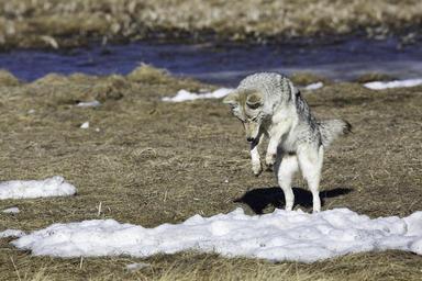 Keywords: coyote jumping wildlife nature snow predator wilderness wild portrait furry mammal carnivore hunter outdoors hunting