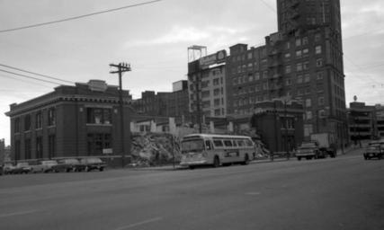 | Keywords: monochrome blackandwhite road outdoor building architecture building complex black and white Demolition of CPR Regional Office building (1929-1973) at 94 West Pender Street to make way for an expanded truck terminal. Photo taken on April 24, 1973. Architect unknown. The architecture was a late example of the Neoclassical Revival Style which saw its heyday in the 1910s. [City of Vancouver Archives; Walter Edwin Frost, photographer] Demolition of CPR Regional Office building (1929-1973) at 94 West Pender Street to make way for an expanded truck terminal. Photo taken on April 24, 1973. Architect unknown. The architecture was a late example of the Neoclassical Revival Style which saw its heyday in the 1910s. [City of Vancouver Archives; Walter Edwin Frost, photographer] |