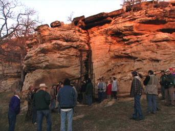 | Keywords: Crack cave se co.png Spectators await their turn as first light of sunrise approaches in Picture Canyon Comanche National Grasslands southeastern Colorado to witness the direct illumination of an inscribed rock knob and two smaller sandstone protrusions with vertically inscribed marks just above it approximately 30 feet behind the protective iron gate entrance to Crack Cave at dawn on the vernal equinox March 20 2005 The actual equinox moment came about a half an hour earlier Some epigraphers believe the rock knob is inscribed with the message The Sun Strikes here on the Day of Bel in consonantal Ogham one of more than a hundred variations of the ancient Celtic alphabet described in the fourteenth century Book of Ballymote's Ogham Tract Sun symbol is Beim in Celtic The vertical grooves representing the consonants B-M L H B-L may have been distorted intentionally to appear as a rebus or word picture of a balance beam Equinoxes come only twice a year when day and night are equal own Transferred from http //en wikipedia org en wikipedia to Commons by User Logan using http //tools wikimedia de/~magnus/commonshelper php CommonsHelper 2008-04-12 Author of this still image is Scott Monahan shot with a Panasonic AG-DVX 100A video SD camera downsized to 480 x 360 pixels Breadh2o at http //en wikipedia org en wikipedia Breadh2o Original upload log page en wikipedia Crack_cave_se_co png 2008-04-12 20 48 Breadh2o 480×360× 330402 bytes author of this still image is Scott Monahan shot with a Panasonic AG-DVX 100A video SD camera downsized to 400 x 300 pixels Spectators gather outside in Picture Canyon Comanche National Grasslands southeastern Colorado to witness the direct illuminat Comanche Equinox Canyons in Colorado |