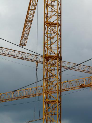 Keywords: crane baukran site build construction work technology metal iron strive yellow