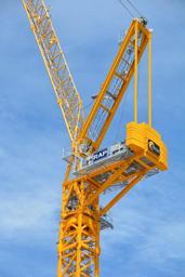 Keywords: crane winch industry construction heavy steel lift sky hoist power equipment machine load machinery lifting cable blue building yellow building construction outdoors work development