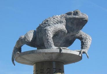 | Keywords: Crapaud St Helier Jersey.jpg en Statue of toad in St Helier Jersey<br> fr Statue d'un crapaud à Saint-Hélier Jersey<br> Jèrriais Lé cra-pôle à La Plianque Billot St Hélyi Jèrri<br> Photo taken by Man vyi with Canon PowerShot A40 on 14/7/2005 Man vyi FoP-Jersey Statues in Jersey Statues of amphibia toads in art Symbols of Jersey Animals of Jersey Monuments and memorials in Saint Helier Jersey | ||||