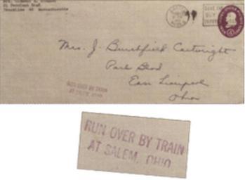 Keywords: Crash Cover US Run Over By Train.png en An old crash cover postal stationery of the United States with a postal marking Run over by train at Salem Ohio ru а ки ованный конве т США - письмо оставшееся непов ежденным после железнодо ожной катаст офы со штампом «Попало под поезд у Салема Огайо» http //post-marka ru/stati/kollektsionirovanie-veshchyei-zheleznodorozhnoi-pochty php post-marka ru century 19 Postal administration of the United States PD-USGov Crash covers Postal stationery of the United States Original upload log wikitable - - 2011-06-18 02 17 43 268 × 197 42410 bytes Michael Romanov <nowiki> en An old crash cover postal stationery of the United States with a postal marking Run over by train at Salem Ohio ru а ки ованный конве т США - письмо ост</nowiki> |