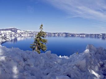 Keywords: crater lake oregon usa winter snow deep blue water scenery landscape nature