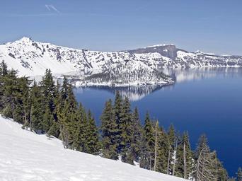 Keywords: crater lake oregon usa landscape winter water nature scenery volcano erosion deep blue crater lake snow