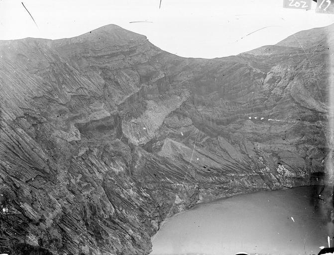 | Keywords: Crater lake of Soufriere volcano YORYM-TA0202.jpg Crater lake of Soufriere volcano Shows steep sides of crater expose lava flows and ash deposits Crater lake in bottom depicted people depicted place Mount Soufrière Saint Vincent 1907 Black and White glass Lantern slide Institution Yorkshire Museum Natural History object history exhibition history credit line Yorkshire Museum York Museums Trust accession number YORYM TA202 The Tempest Anderson Photographic Archive held at York Museums Trust <br> York Museums Trust image PD-old-100 PD-US Uploaded with UploadWizard Images from the Tempest Anderson Collection vulcanology Crater lakes 1907 photographs La Soufrière Saint Vincent |