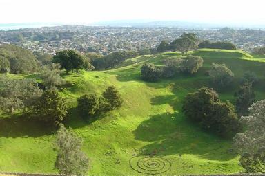 Keywords: Crater One Tree Hill.JPG Looking westwards from the Summit of One Tree Hill to one of its two craters Own 2007-10-14 Follash One Tree Hill New Zealand Sculptures in Auckland Volcanic craters of New Zealand Volcanoes of New Zealand in 2007