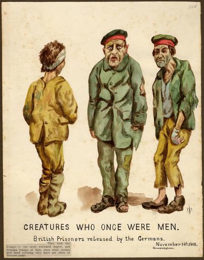 Keywords: university of victoria universityofvictoria uvic great britain. army. royal regiment of artillery greatbritainarmyroyalregimentofartillery caricatures and cartoons--20th century caricaturesandcartoons20thcentury notebooks war artists warartists world war, 1914-1918--pictorial works worldwar19141918pictorialworks world war, 1914-1918--caricatures and cartoons worldwar19141918caricaturesandcartoons people Item is one of 123 pen-and-ink drawings and watercolours from two volumes titled: "Sketches of the War: France/Belgium". The sketches vary from satirical cartoons to more detailed and naturalistic renditions. They are often accompanied by an ironic title and are often signed with the artist's initials, "J.M." The artist's satirical targets include the officers and high command of both combatant sides; the disjuncture between reported and actual events, and the death of civilians as a fact of modern warfare. Item is one of 123 pen-and-ink drawings and watercolours from two volumes titled: "Sketches of the War: France/Belgium". The sketches vary from satirical cartoons to more detailed and naturalistic renditions. They are often accompanied by an ironic title and are often signed with the artist's initials, "J.M." The artist's satirical targets include the officers and high command of both combatant sides; the disjuncture between reported and actual events, and the death of civilians as a fact of modern warfare. |