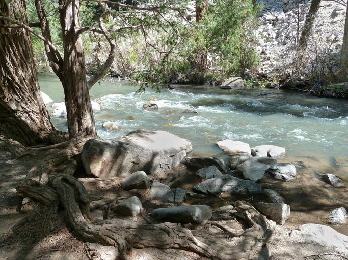 Keywords: creek river water river bed tree roots nature scenery landscape