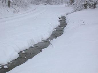 Keywords: creek water snow stream landscape outdoors flowing natural motion white