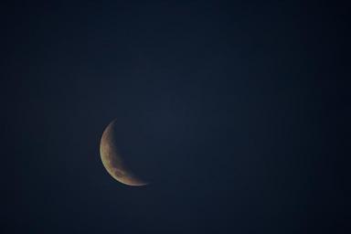 Keywords: crescent moon moon crescent sliver orbital light sky blue dark