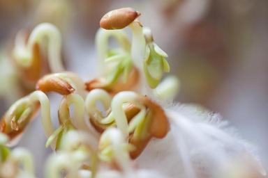Keywords: cress seedlings seedling plant developing germ embryophyta germ leaves sprouting section radicula root system curved s shaped tender green white light brown naturkost bio nutritious delicious macro