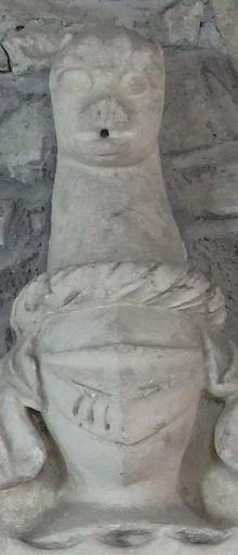 Keywords: CrestEasterSepulchreBishopsNympton.JPG en Heraldic crest sculpted above Easter Sepulchre tomb generally assumed to be that of Sir Lewis Pollard d 1526 judge north wall of chancel Bishop's Nympton Church Devon No heraldry survives on the escutcheon below and the crest issuing from the helm of a head and neck of an animal of some sort are not recognisable as the crest of Pollard own photo own photo Sculpture 1526; photo July 2012 Pollard family St Mary's church Bishop's Nympton Interiors of churches in Devon |