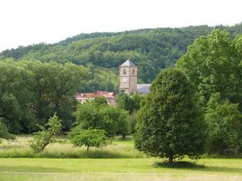 Keywords: creutzburg place werra valley thuringia germany steeple forest landscape nature church spire