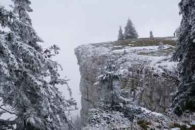 Keywords: creux du van switzerland noiraigue swiss jura stone wall wall mountains jura winter fog white cliffs trees