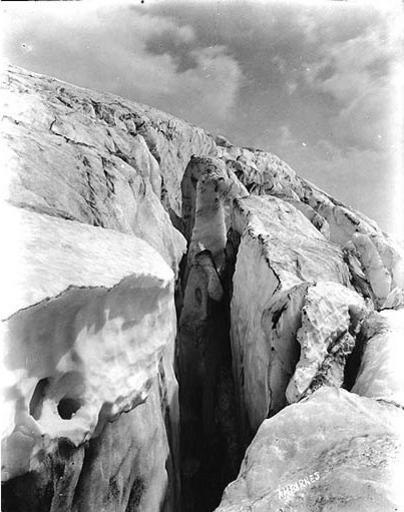 | Keywords: Crevasse in Stevens Glacier, Mount Rainier National Park, Washington, ca 1913 (BAR 190).jpeg Photograph Creator Albert Henry Barnes On sleeve of negative Stevens Glacier Crevasse Subjects LCTGM Glaciers--Washington State --Mount Rainier National Park Subjects LCSH Glacial crevasses--Washington State --Mount Rainier National Park; Stevens Glacier Wash ; Mount Rainier National Park Wash depicted place Mount Rainier ca 1913 Silver gelatin b/w Institution University of Washington UWASH-AHBarnes-source accession number 190 PD-old-auto-1923 1920 Information field Order Number BAR216 Images from the Albert Henry Barnes Collection to check Glaciers of the United States Mount Rainier |