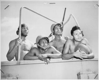 | Keywords: Crew of a 20mm gun aboard a Coast Guard fighting ship are hanging up some new records for speed and accuracy. - NARA - 513190.tif crew of a 20mm gun aboard a Coast Guard fighting ship are hanging up some new records for speed and accuracy Left to right Daniel Moore Walter L Bottoms William Wheeler and Rudolph C Grimes all Steward's Mates second class ca 1941 - ca 1945 « L'équipage d'un canon de 20mm à bord d'un navire Garde-côte et de combat qui sont en train de battre de nouveaux records de vitesse et de précision De gauche à droite Daniel Moore Walter L Bottoms William Wheeler et Rudolph C Grimes tous soldats de deuxième classe vers 1941-1945 513190 Local identifier 26-G-3151 Department of Transportation U S Coast Guard Office of Public and International Affairs 04/01/1967 - 1985 Still Picture Records Section Special Media Archives Services Division NWCS-S National Archives at College Park 8601 Adelphi Road College Park MD 20740-6001 circa 1941 1945 Record group Record Group 26 Records of the U S Coast Guard 1785 - 2005 Record group ARC 355 Activities Facilities and Personalities compiled 1886 - 1967 Series ARC 513164 Variant control numbers NAIL Control Number NWDNS-26-G-3151<br /> Select List Identifier AFRO/AM LIST 118 General notes Scope and content File unit File unit ARC yes <gallery> File Crew_of_a_20mm_gun_aboard_a_Coast_Guard_fighting_ship_are_hanging_up_some_new_records_for_speed_and_accuracy _-_NARA_-_513190 tif tif File Crew_of_a_20mm_gun_aboard_a_Coast_Guard_fighting_ship_are_hanging_up_some_new_records_for_speed_and_accuracy _-_NARA_-_513190 jpg jpg </gallery> NARA-cooperation PD-USGov People of the United States Coast Guard NARA TIF images with categorized JPGs |
