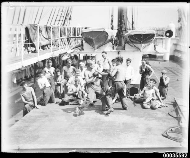 | Keywords: hood collection hoodcollection samuel j hood collection samueljhoodcollection merchant vessel merchantvessel foreign vessel foreignvessel maritime activity maritimeactivity barque ship's crew shipscrew sailor sailors sydney harbour sydneyharbour harbour scenes harbourscenes magdalene vinnen magdalenevinnen boxing woolloomooloo blackandwhite monochrome photo border black and white The four-masted steel barque, MAGDALENE VINNEN, was built in 1921 in Kiel, Germany for F A Vinnen and Company in Bremen. On 27 February 1933, under the command of Captain Lorenz Peters, MAGDALENE VINNEN sailed into Sydney Harbour. The masts were too tall to allow the vessel to pass under the Harbour Bridge to be berthed in Pyrmont, so it was moved to Number 2 wharf in Woolloomooloo. The barque was loaded with almost 16,000 bales of wool, the fourth largest shipment to have left Sydney, before it sailed the record-breaking 82-day voyage for Falmouth, England. The barque visited Australia again in 1935, with its cargo being wheat, lifted from Port Broughton in South Australia. The following year, the vessel was sold to Norddeutscher Lloyd, Bremen, renamed KOMMODORE JOHNSEN and used as a cargo carrier and sail-training ship. In 1945, the ship was awarded to the Soviet Union as war compensation and renamed SEDOV. When it was first built, it was the largest auxiliary barque in the world. To this day, it is still in operation and in 2011, it retained its ranking as the largest tall ship in the world. This photo is part of the Australian National Maritime Museum’s Samuel J. Hood Studio collection. Sam Hood (1872-1953) was a Sydney photographer with a passion for ships. His 60-year career spanned the romantic age of sail and two world wars. The photos in the collection were taken mainly in Sydney and Newcastle during the first half of the 20th century. The ANMM undertakes research and accepts public comments that enhance the information we hold about images in our collection. This record has been updated accordingly. Photographer: Samuel J. Hood Studio Collection Object no. 00035592 The four-masted steel barque, MAGDALENE VINNEN, was built in 1921 in Kiel, Germany for F A Vinnen and Company in Bremen. On 27 February 1933, under the command of Captain Lorenz Peters, MAGDALENE VINNEN sailed into Sydney Harbour. The masts were too tall to allow the vessel to pass under the Harbour Bridge to be berthed in Pyrmont, so it was moved to Number 2 wharf in Woolloomooloo. The barque was loaded with almost 16,000 bales of wool, the fourth largest shipment to have left Sydney, before it sailed the record-breaking 82-day voyage for Falmouth, England. The barque visited Australia again in 1935, with its cargo being wheat, lifted from Port Broughton in South Australia. The following year, the vessel was sold to Norddeutscher Lloyd, Bremen, renamed KOMMODORE JOHNSEN and used as a cargo carrier and sail-training ship. In 1945, the ship was awarded to the Soviet Union as war compensation and renamed SEDOV. When it was first built, it was the largest auxiliary barque in the world. To this day, it is still in operation and in 2011, it retained its ranking as the largest tall ship in the world. This photo is part of the Australian National Maritime Museum’s Samuel J. Hood Studio collection. Sam Hood (1872-1953) was a Sydney photographer with a passion for ships. His 60-year career spanned the romantic age of sail and two world wars. The photos in the collection were taken mainly in Sydney and Newcastle during the first half of the 20th century. The ANMM undertakes research and accepts public comments that enhance the information we hold about images in our collection. This record has been updated accordingly. Photographer: Samuel J. Hood Studio Collection Object no. 00035592 |