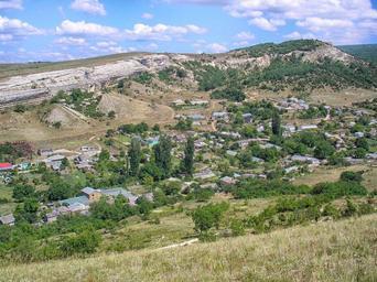 Keywords: crimea landscape scenic plants grass forest trees woods mountains valley ravine nature outside village buildings hdr country countryside summer spring