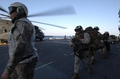| Keywords: Crisis Response Exercise DVIDS63830.jpg en Chief Warrant Officer Bryan Simon Combat Camera Officer of USS Wasp LHD 1 ensures Marines attached to 4th Platoon 2nd Fleet Anti-terrorism Security Team cross the flight deck safely to an MH-53E Sea Dragon of Helicopter Mine Countermeasure Squadron 15 prior to flying ashore during a crisis response exercise Coalition forces are conducting the exercise Nov 1-7 to enhance capabilities in responding to a host nation's request for assistance during a time of a crisis Exercises between the coalition and its regional partners provide an excellent opportunity for the coalition to demonstrate its commitment to maintaining security and stability in the region 2007-11-04 Petty Officer 2nd Class Sandra Palumbo https //www dvidshub net/image/63830 071104-N-+++++-055 2007-11-05 11 15 USS WASP AF PD-USGov-Military-Navy MH-53E Sea Dragon Images from DoD uploaded by Fæ |