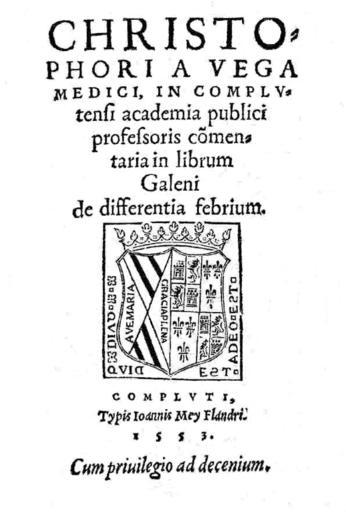 | Keywords: Cristóbal de Vega (1553) Comentaria in librum Galeni de differentia febrium.png Cristóbal de Vega en Alcalá de Henares en 1553 1553 http //alfama sim ucm es/dioscorides/consulta_libro asp ref X533697254 idioma 0 Christophori a Vega Comentaria in librum Galeni de differentia febrium Compluti typis Ioannis Mey Flandri; 1553 Cristóbal de Vega PD-old PD-old-100 16th-century books 1553 in Spain Cristóbal de Vega Medical books from Spain Books published in Alcalá de Henares University of Alcalá History of Alcalá de Henares Frontispieces from Spain Books in Latin Files by User Raimundo Pastor portadas |