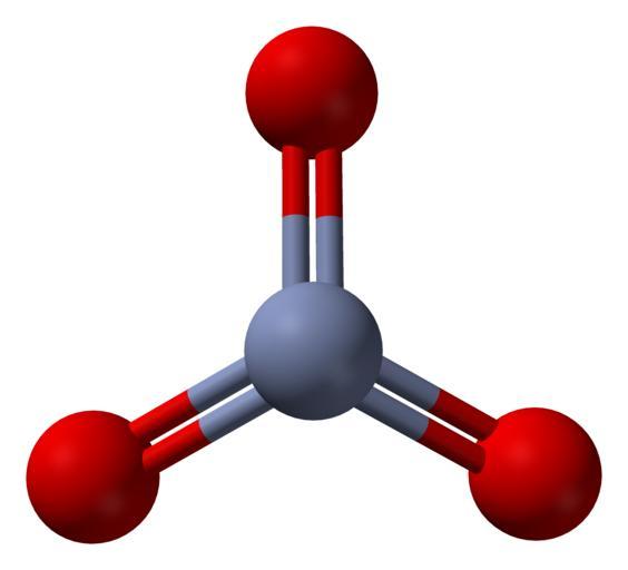 | Keywords: CrO3-monomer-from-DFT-PW91-aD-2008-top-3D-balls.png Ball-and-stick model of the calculated gas-phase structure of the chromium trioxide monomer CrO<sub>3</sub> The structure is predicted to be pyramidal C<sub>3v</sub> rather than planar D<sub>3h</sub> Colour code Chromium Cr blue-grey Oxygen O red Structure calculated at the PW91/aD level of DFT reported in http //dx doi org/10 1021/ja077984d J Am Chem Soc 2008 130 5167 “5177 Model manipulated in http //www crystalmaker com/ CrystalMaker 8 3 Image generated in http //accelrys com/products/discovery-studio/visualization/discovery-studio-visualizer html Accelrys DS Visualizer Own 2011-03-13 Ben Mills Benjah-bmm27 Images by Ben Mills Ball-and-stick models Chromium trioxide |
