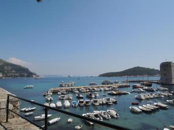 Keywords: croatia dubrovnik city boat boats sea mountains water port bay