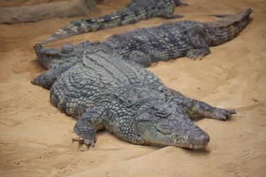 Keywords: crocodile asleep zoo