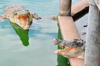 Keywords: crocodile jaws reptile head swamp water large amphibian open leather asia green