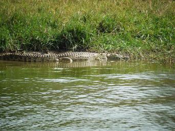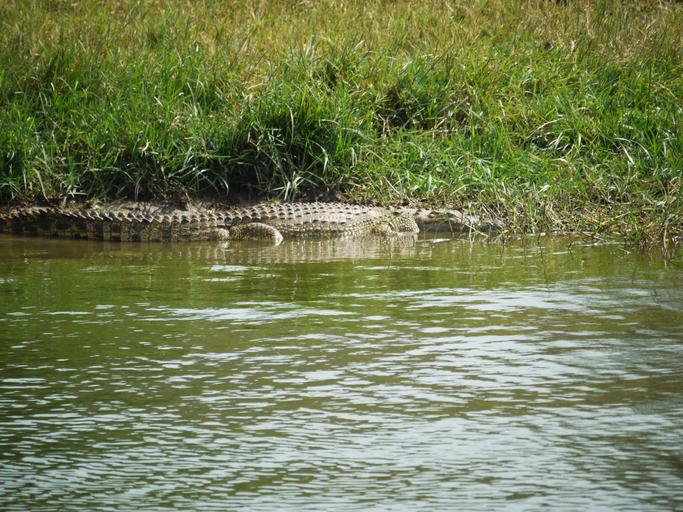 Keywords: crocodile on the lurking uganda wild animal africa vigilant animal ready wildlife safari wilderness kazinga channel free freedom water green watering hole shades of green sunny queen elisabeth national park bank concerns lurking wait sun